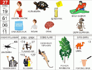 | 99 = 91 - 30 - 60 - 80 Hidung Belang - Burung Jalak - Bayi - Kodak - Meja - Arjuna <=> Angka Pelarian = 31 <=> Gaya Baru = 01 <=> Kode Alam = Ketemu Telur di Semak |