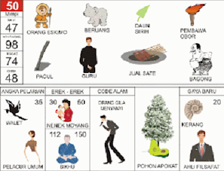 | 50 = 47 - 98 - 74 - 48 Orang Eskimo - Beruang - Pembawa Obor Pacul - Guru - Bagong <=> Angka Pelarian = 35 <=> Gaya Baru = 20 <=> Kode Alam = Orang Gila menyanyi |
