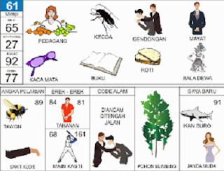 | 61 = 65 “ 27 - 92 - 77 Pedagang - Kecoak - Gendongan - Kacamata - Buku - Baladewa <=> Angka Pelarian = 89 <=> Gaya Baru = 91 <=> Kode Alam = Diancam ditengah Jalan |