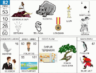 | 82 = 53 - 10 - 28 - 60 Gembala Sapi - Kuda Nil - Lilin - Kartu As - Telinga - Berlian - - Lencana - Udawa <=> Angka Pelarian = 15 <=> Gaya Baru = 47 <=> Kode Alam = Dapur Terbakar |