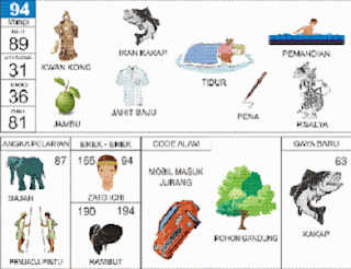 | 94 = 89 - 31 - 36 - 81 Kwan Kong - Ikan Kakap - Pemandian - Jambu - Pen - P.Salya <=> Angka Pelarian = 87 <=> Gaya Baru = 63 <=> Kode Alam = Mobil Masuk Jurang |